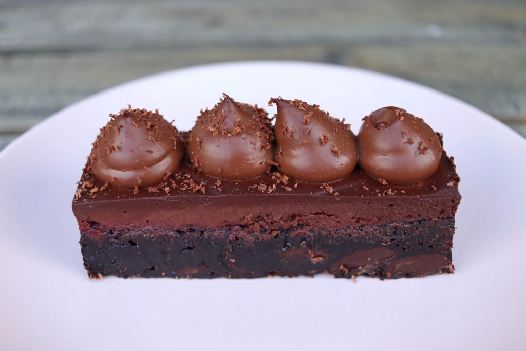 Virunga 70% chocolate brownie layered with cherry compote, silky-smooth dark chocolate ganache, blobs of dense, pudding-like chocolate crèmeux and chocolate shavings on top. Breid does a slightly different version of the Black Forest brownie after December too.