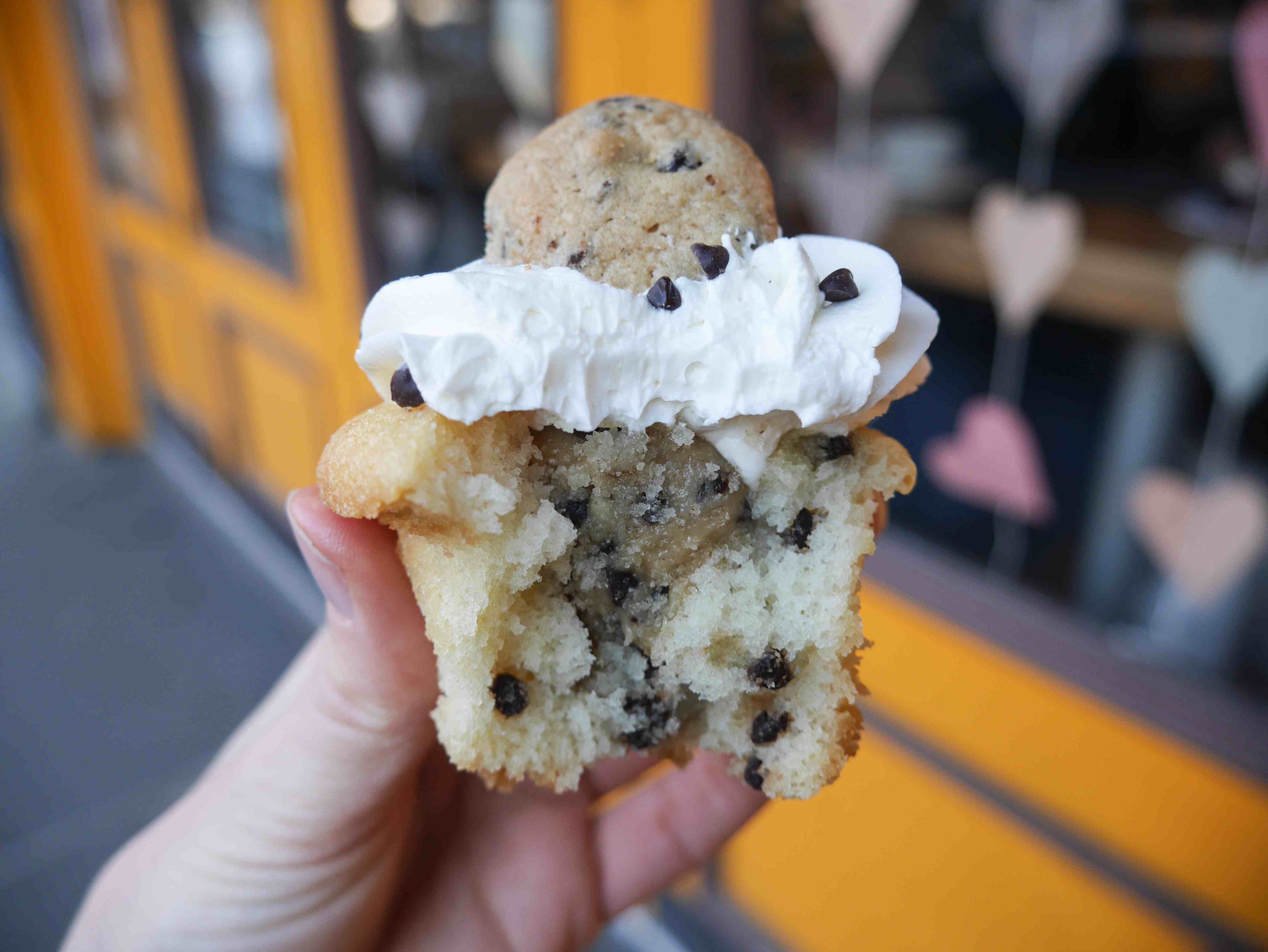 While the fluffy buttercream and chocolate chip cookie might be the initial attraction, the best part of this cupcake is hidden inside. Take a bite into the super soft vanilla cake, and you’ll find a center of raw cookie dough and even more chocolate chips. This one might be my favorite, but please don’t ever make me choose.